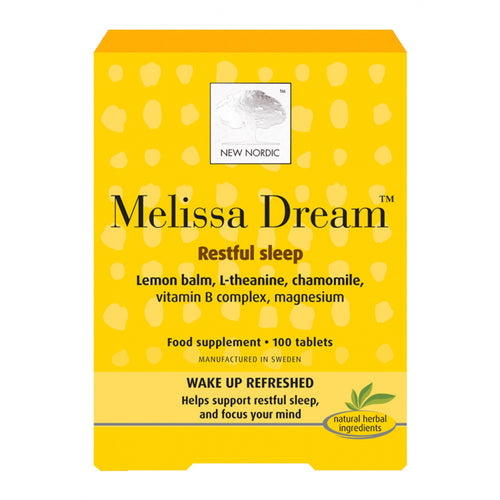 Melissa Dream is the tablet you need to find sleep, normal function of your nervous system and normal psychological functions. The unique bio-active micro-nutrients and herbal extract combination contained in each tablet nourish and influence your brain, nerves and your psychological functions. The tablet which is manufactured in Sweden, contains a lemon balm extract, which helps maintain a normal sleep, L-theanine amino acid, chamomile extract, vitamin B complex and magnesium.